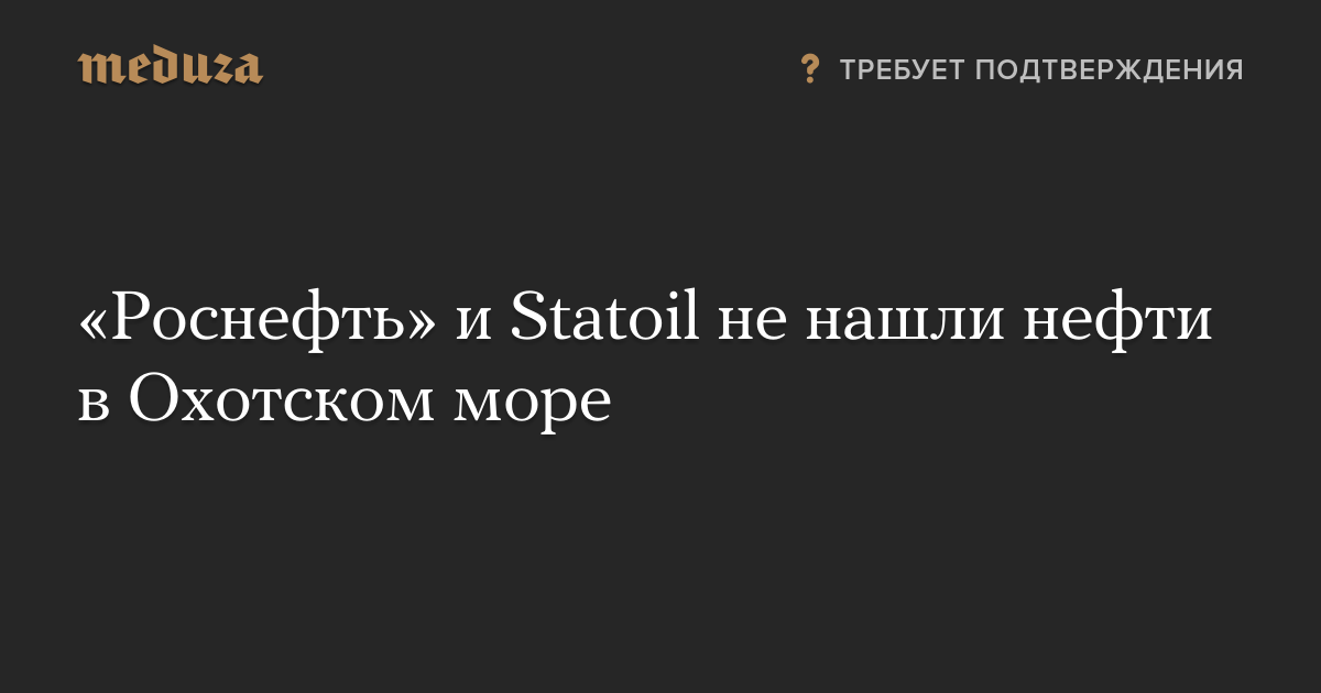 В июне глава «Роснефти» Игорь Сечин на годовом собрании акционеров заявил, что российская компаниям вместе со Statoil надеется открыть на шельфе Охотского моря месторождение с ресурсом более 100 миллионов тонн нефтяного эквивалента.