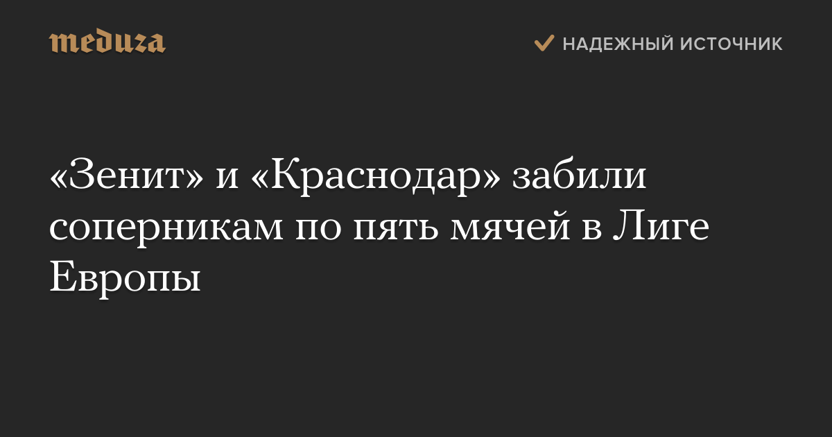 «Зенит» и «Краснодар» забили соперникам по пять мячей в Лиге Европы