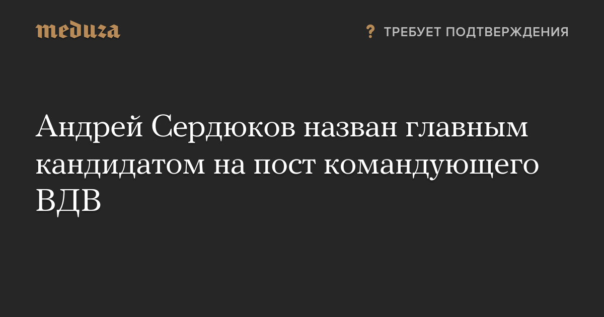 «Кандидатура нового командующего ВДВ определена, им должен стать начальник штаба — первый заместитель командующего войсками ЮВО генерал-полковник Андрей Сердюков», — сказал собеседник агентства.