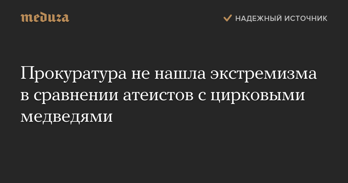 Прокуратура не нашла экстремизма в сравнении атеистов с цирковыми медведями