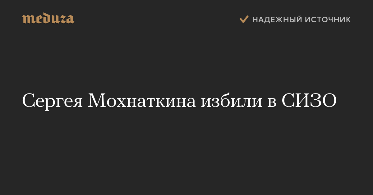 Оппозиционера Сергея Мохнаткина избили в СИЗО города Котласа Архангельской области. Об этом сообщила его подруга Татьяна Пашкевич. По ее словам, на очередное заседание суда «сотрудники ФСИН притащили Мохнаткина за руки и бросили в клетку. Сергей был босым, а изо рта текла кровь».