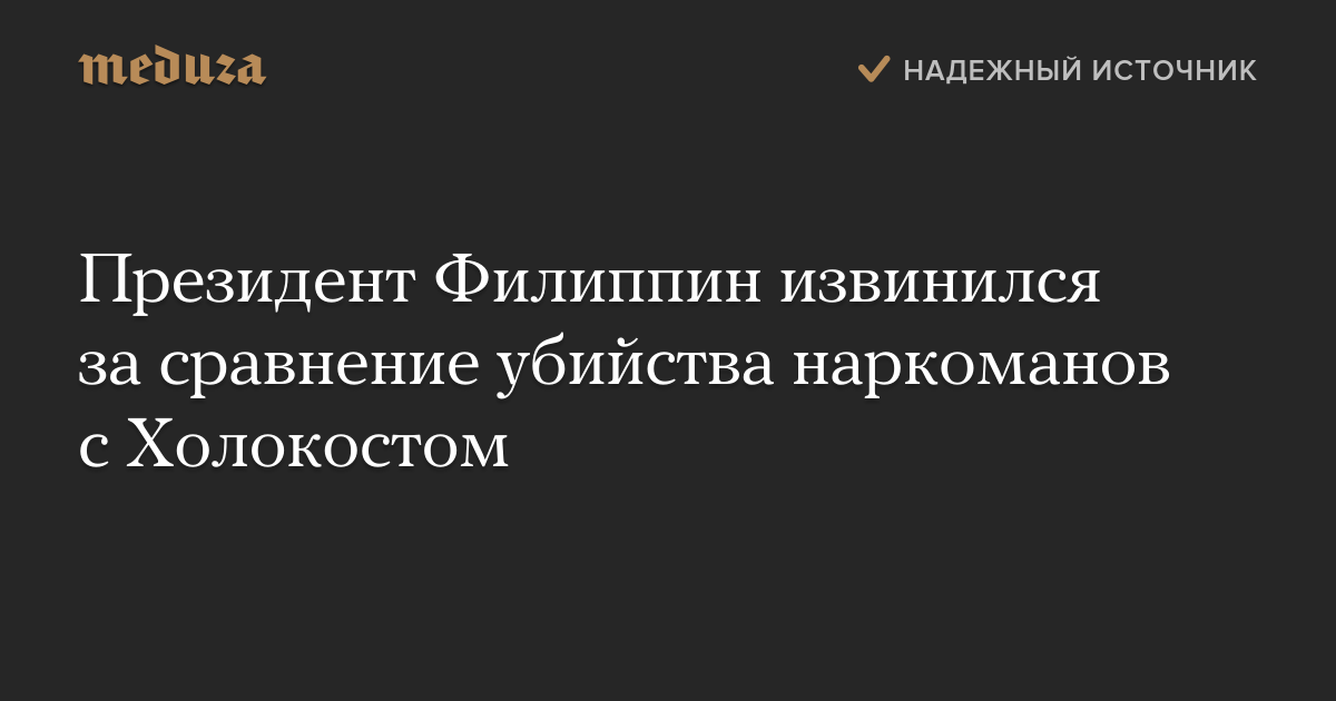 Президент Филиппин извинился за сравнение убийства наркоманов с Холокостом