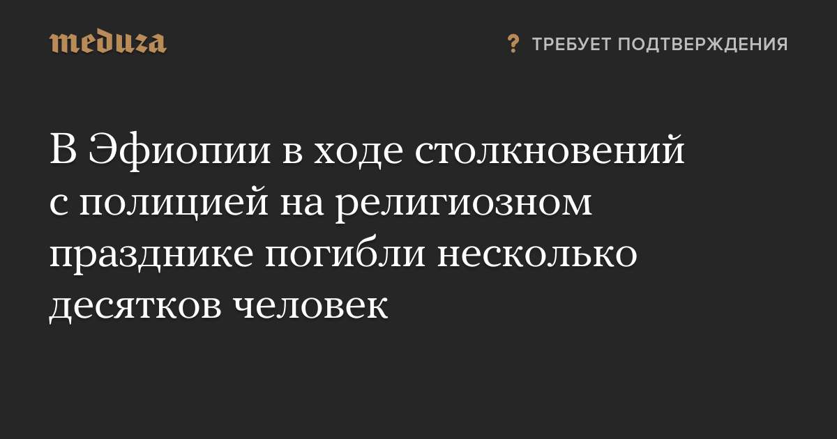 В эфиопском городе Дэбрэ-Зэйт в ходе столкновений с полицией, начавшихся во время религиозного праздника, погибли несколько десятков человек. Причиной смерти людей, по словам очевидцев, стала давка.