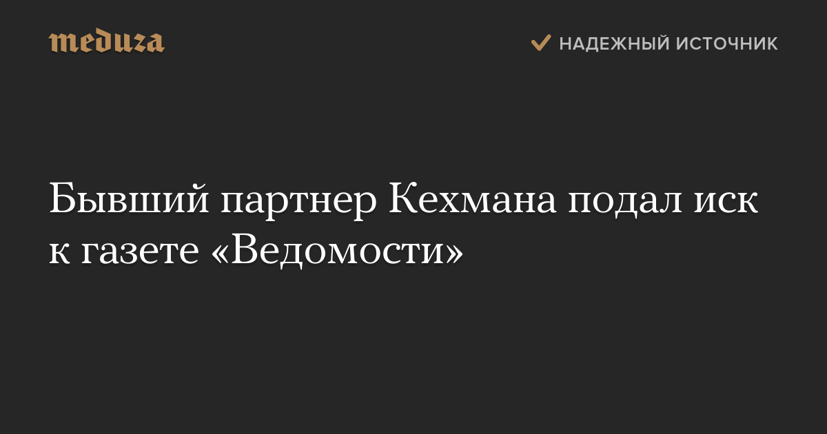 Бывший партнер Кехмана подал иск к газете «Ведомости»