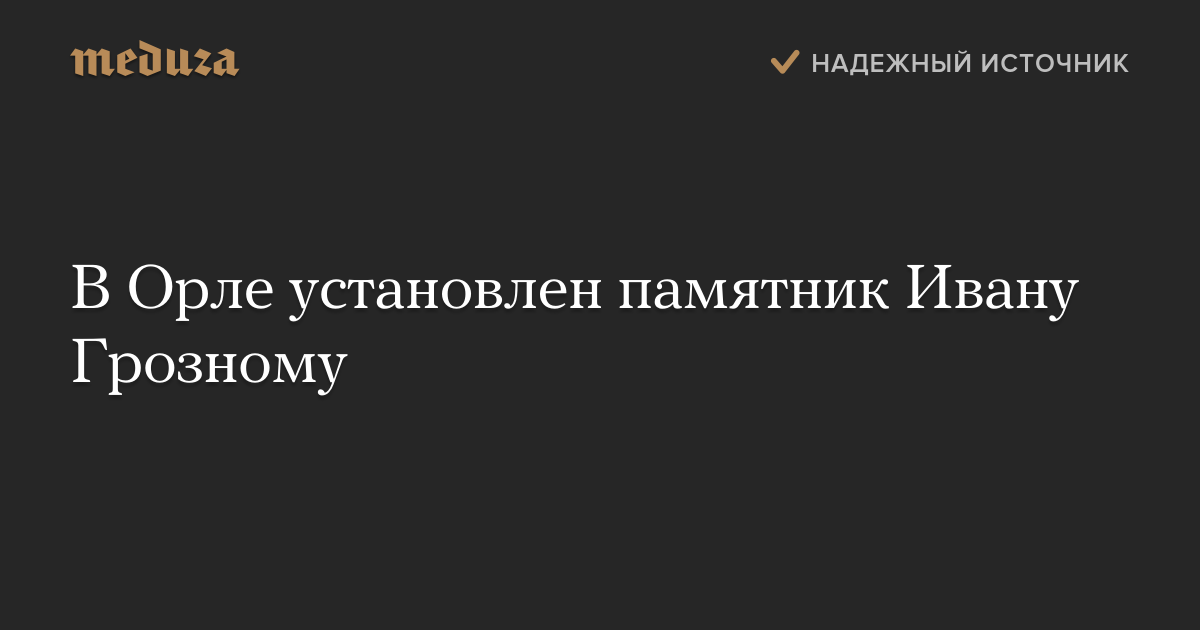 Губернатор Орловской области Вадим Потомский 13 июля объявил, что в начале в рамках празднования 450-летия со дня основания Орла около театра «Свободное пространство» будет открыт первый в России памятник Ивану Грозному, который считается основателем города.