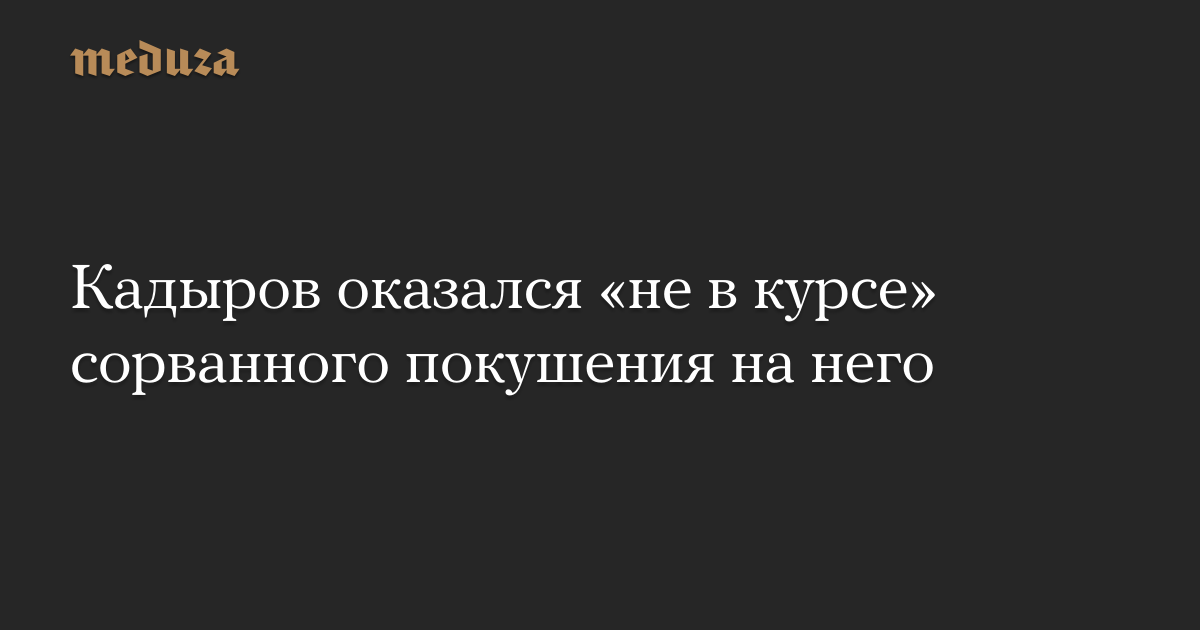 Глава Чечни Рамзан Кадыров заявил, что он «не в курсе» подготовки покушения на него, о котором писала «Новая газета». Об этом Кадыров написал в комментариях в инстаграме «Кавказской правды».