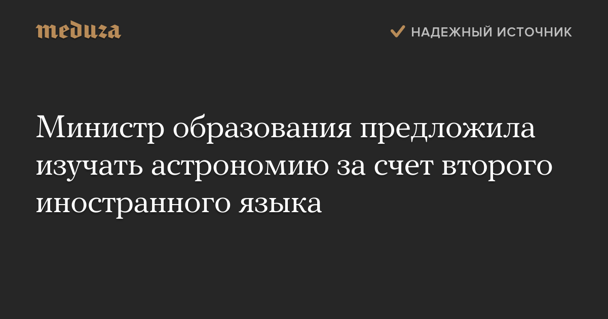 Уроки астрономии будут добавлены в обязательную программу средней школы за счет сокращения учебных часов на второй иностранный язык. Об этом заявила в интервью «Комсомольской правде» глава Минобрнауки Ольга Васильева.