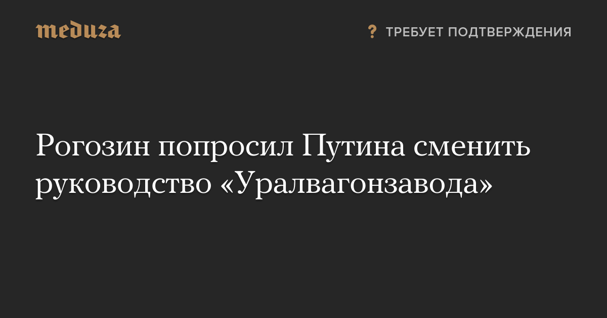 Вице-премьер по военно-промышленному комплексу Дмитрий Рогозин попросил президента России Владимира Путина сменить руководство «Уралвагонзавода». Как пишут «Ведомости» со ссылкой на несколько источников, в сентябре Рогозин отправил Путину письмо с такой просьбой.