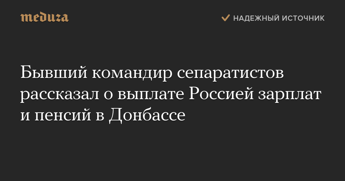 Бывший командир сепаратистов рассказал о выплате Россией зарплат и пенсий в Донбассе