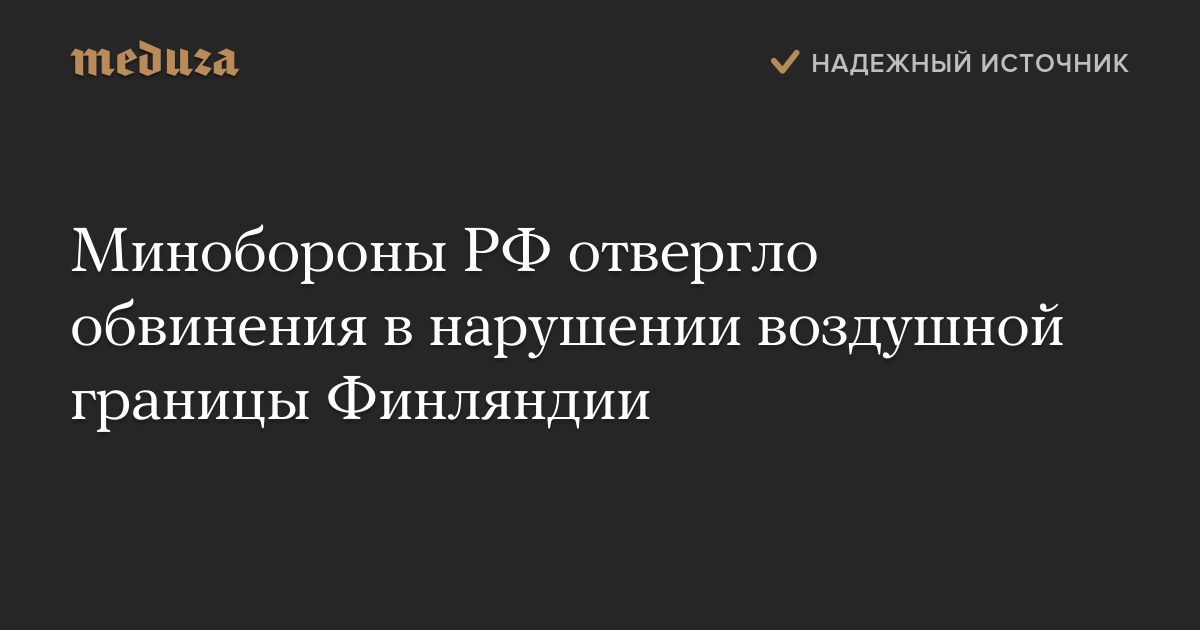 Минобороны РФ отвергло обвинения в нарушении воздушной границы Финляндии