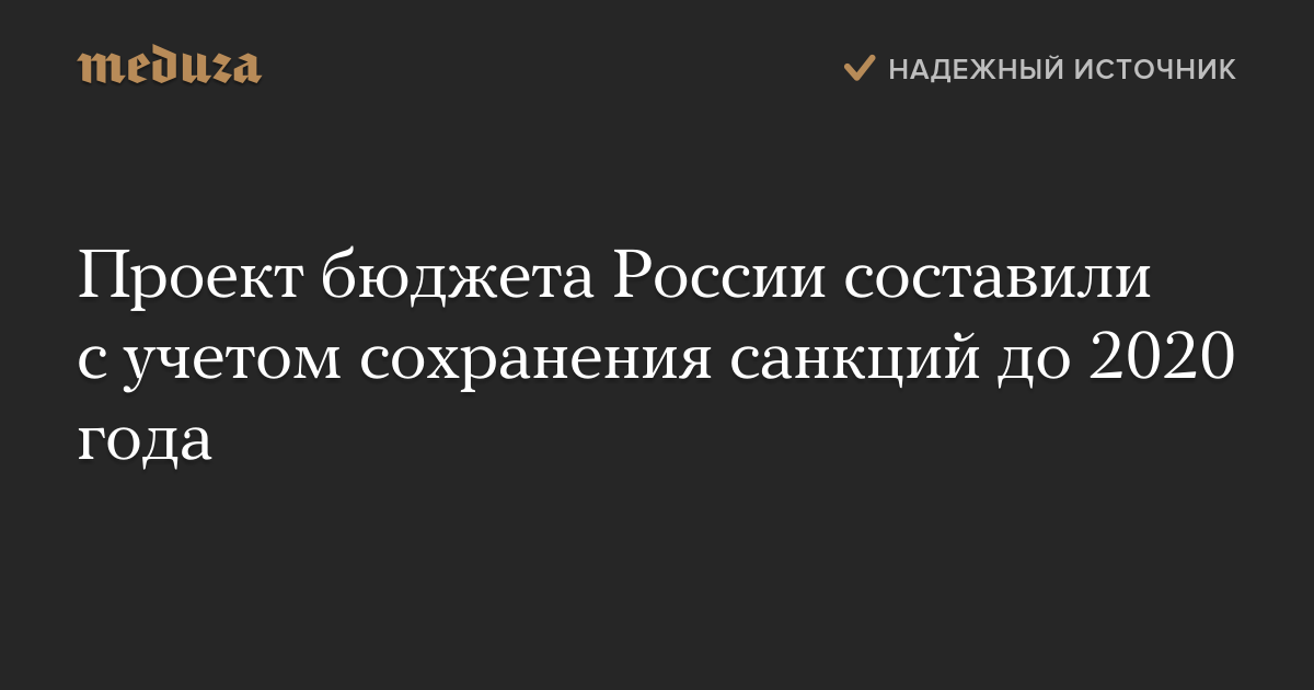 Проект бюджета России составили с учетом сохранения санкций до 2020 года