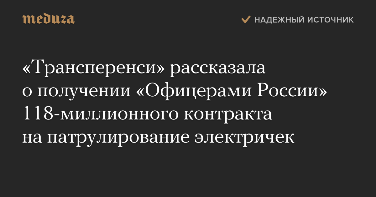 «Трансперенси» рассказала о получении «Офицерами России» 118-миллионного контракта на патрулирование электричек