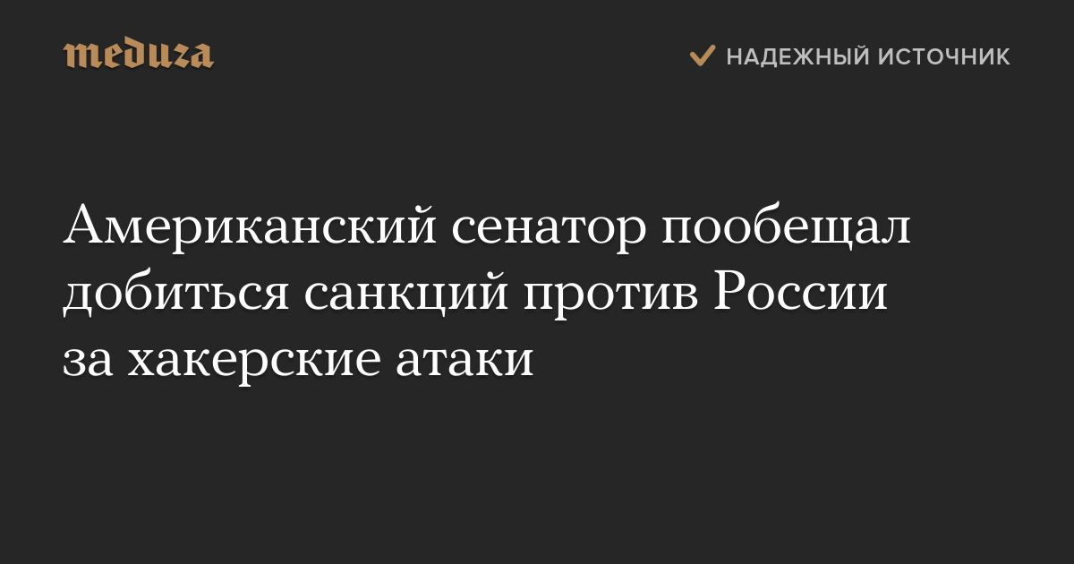 Американский сенатор пообещал добиться санкций против России за хакерские атаки