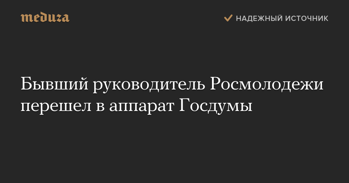 Бывший руководитель Росмолодежи перешел в аппарат Госдумы