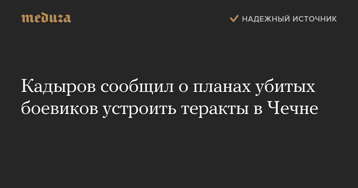 Кадыров сообщил о планах убитых боевиков устроить теракты в Чечне