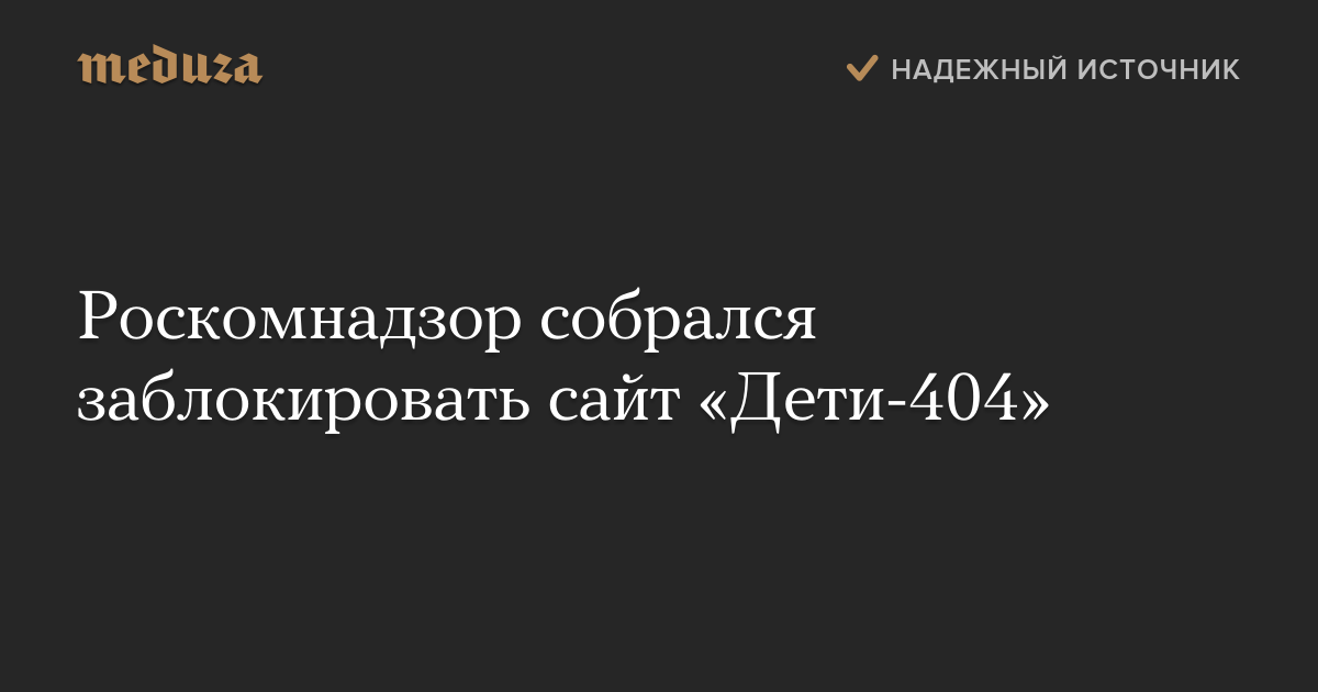 Роскомнадзор собрался заблокировать сайт «Дети-404»