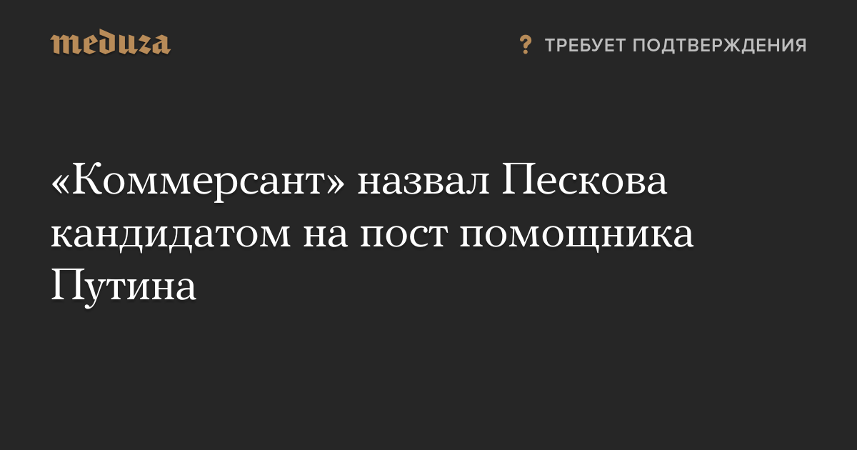 «Коммерсант» назвал Пескова кандидатом на пост помощника Путина