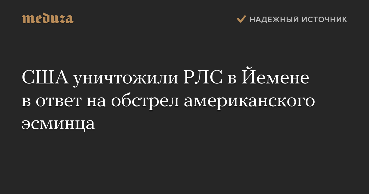 США уничтожили РЛС в Йемене в ответ на обстрел американского эсминца