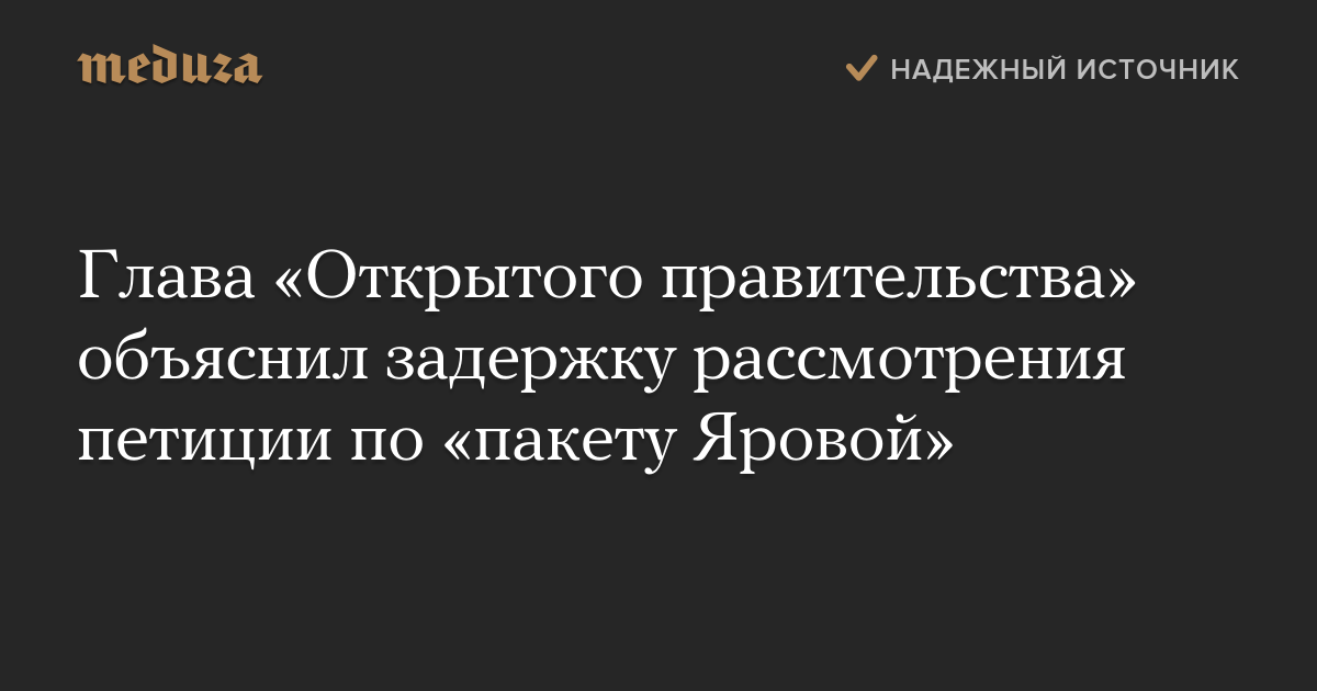 Глава «Открытого правительства» Михаил Абызов объяснил, что рабочая группа все еще не рассмотрела петицию по «пакету Яровой» из-за изменения ее состава. Как заметил министр, сообщение об этом появилось на сайте «Открытого правительства» еще 6 октября.