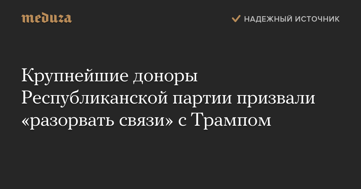 Крупнейшие доноры Республиканской партии призвали «разорвать связи» с Трампом