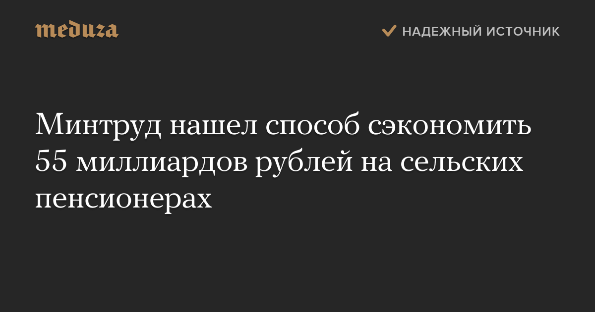 Минтруд нашел способ сэкономить 55 миллиардов рублей на сельских пенсионерах