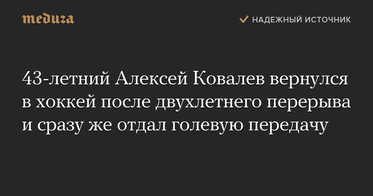 43-летний Алексей Ковалев вернулся в хоккей после двухлетнего перерыва и сразу же отдал голевую передачу