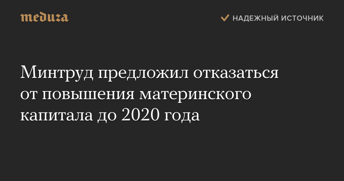Министерство труда РФ разработало законопроект, предусматривающий отказ от индексации материнского капитала до 2020 года. В сообщении пресс-службы министерства говорится, что такое предложение выдвинуто «с учетом финансово-экономической ситуации в стране».