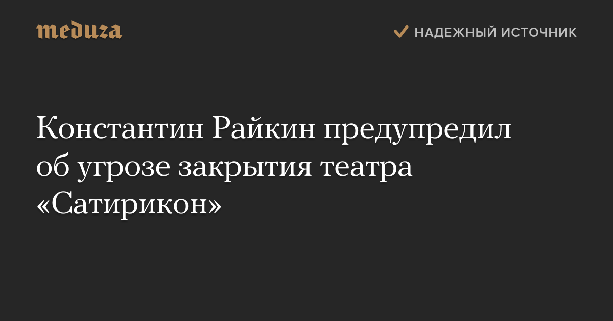 Константин Райкин предупредил об угрозе закрытия театра «Сатирикон»