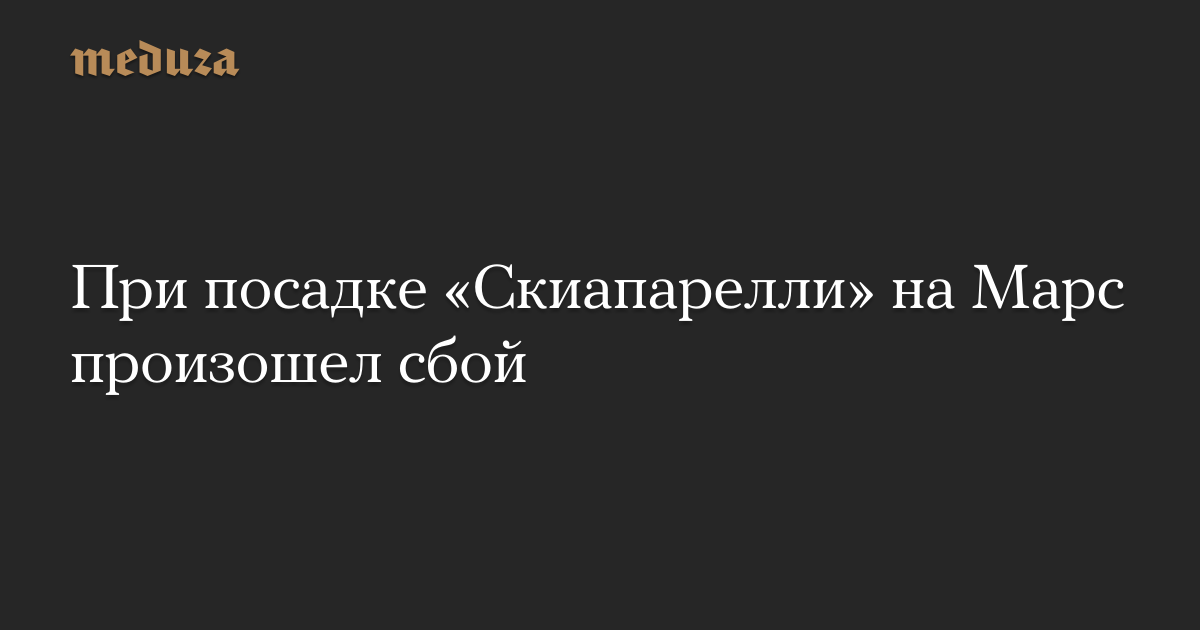Что это за сообщение и почему оно повсюду на «Медузе»?При посадке «Скиапарелли» на Марс произошел сбой. Аппарат вошел в атмосферу, как и планировалось, раскрыл парашют, а потом отстегнул его. В этот момент что-то пошло не по плану, но что именно ученые пока не знают. Об этом заявили в Европейском космическом агентстве. По данным ЕКА, двигатели «Скиапарелли» проработали меньше, чем ожидалось.