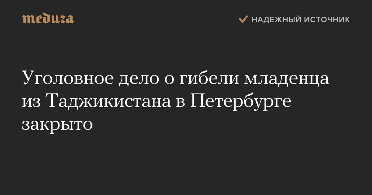 Уголовное дело о гибели младенца из Таджикистана в Петербурге закрыто