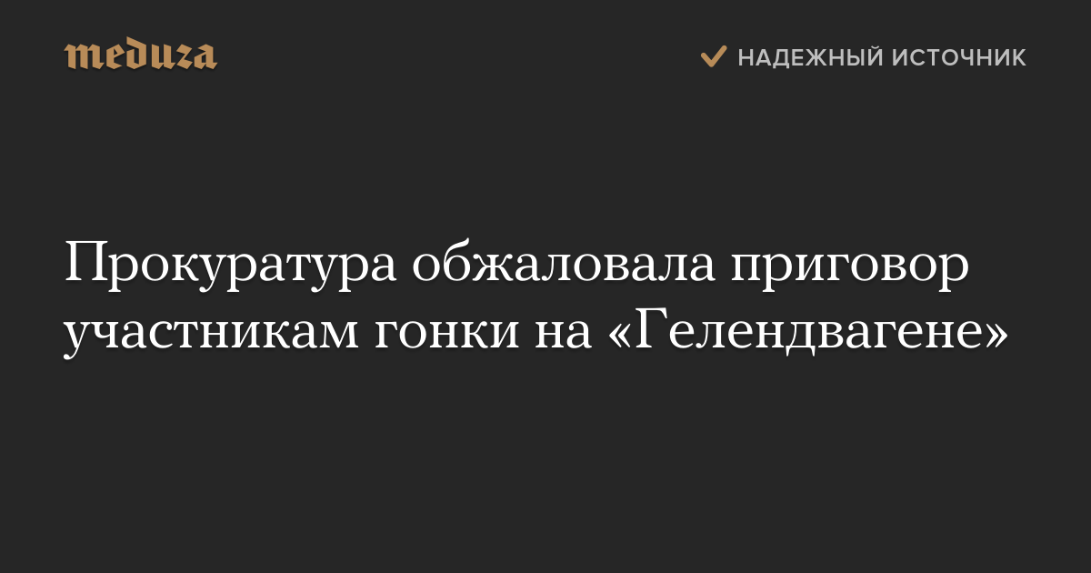Прокуратура обжаловала приговор участникам гонки на «Гелендвагене»
