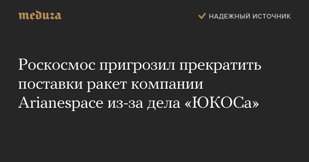 Роскосмос пригрозил прекратить поставки ракет компании Arianespace из-за дела «ЮКОСа»