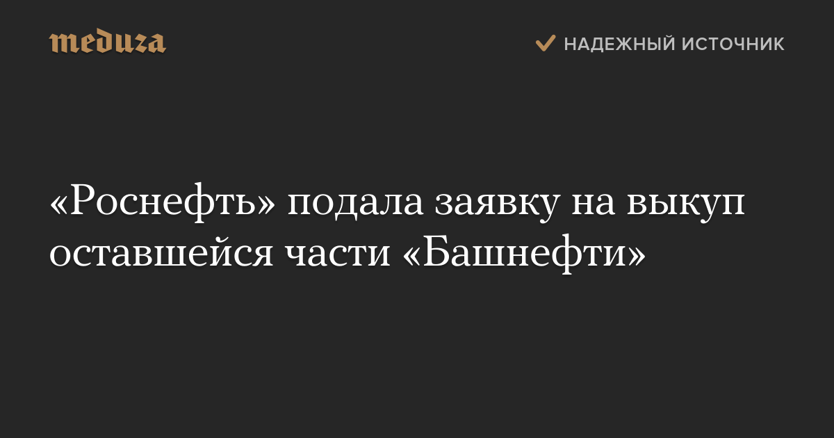 «Роснефть» подала заявку на выкуп оставшейся части «Башнефти»