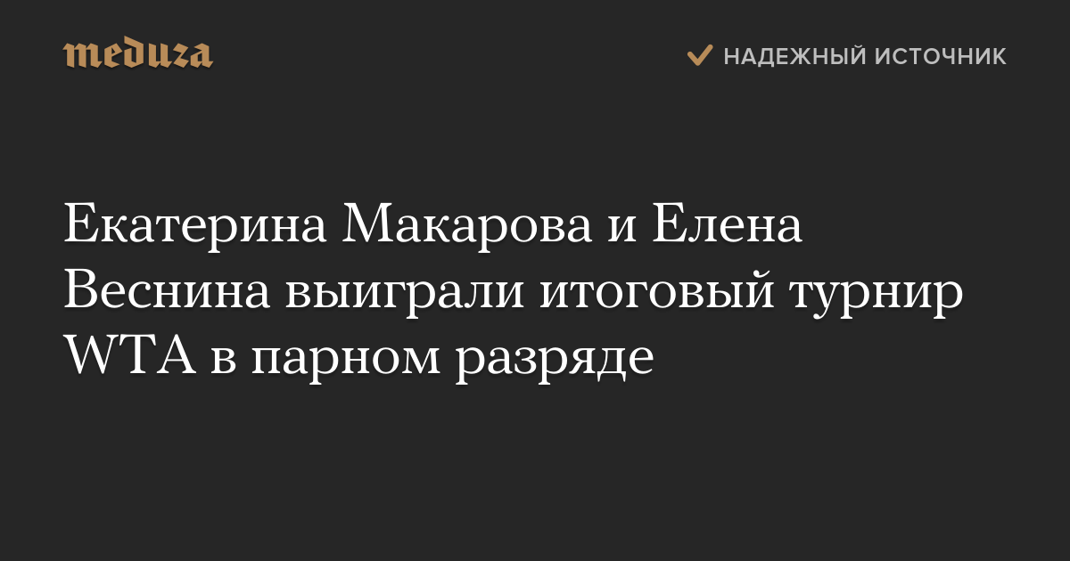 Российские теннисистки Екатерина Макарова и Елена Веснина выиграли итоговый турнир Женской теннисной ассоциации (WTA) в парном разряде.