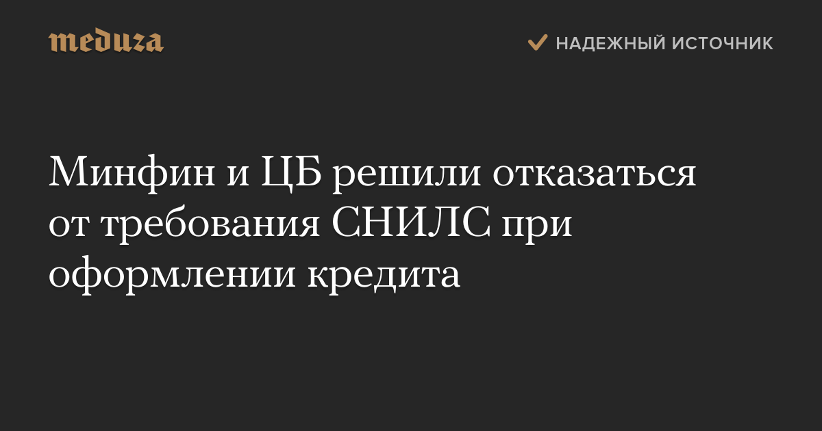 Минфин и ЦБ решили отказаться от требования СНИЛС при оформлении кредита