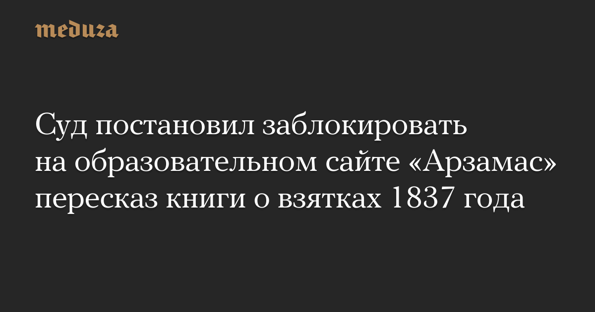 Суд постановил заблокировать на образовательном сайте «Арзамас» пересказ книги о взятках 1837 года