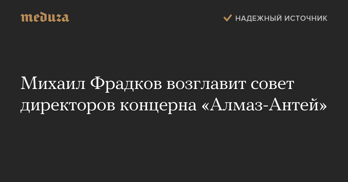 Бывший глава Службы внешней разведки РФ Михаил Фрадков станет председателем совета директоров концерна «Алмаз-Антей», а также возглавит Институт стратегических исследований (РИСИ). Об этом было объявлено на встрече президента РФ Владимира Путина с Фрадковым и главой корпорации «Ростех» Сергеем Чемезовым, сообщает ТАСС.