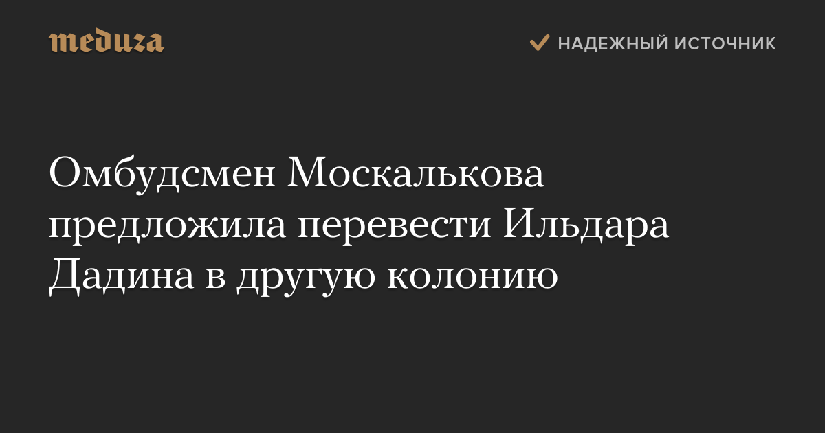 «Целесообразно было бы перевести Ильдара Дадина для отбывания наказания в другую колонию», — цитирует ее «Интерфакс». По словам омбудсмена, после заявлений Дадина о применении к нему насилия «всегда будет некое подозрение в необъективности или субъективном подходе к человеку».