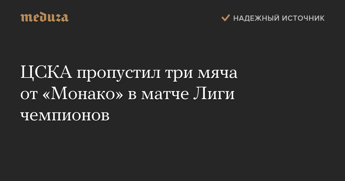 ЦСКА пропустил три мяча от «Монако» в матче Лиги чемпионов