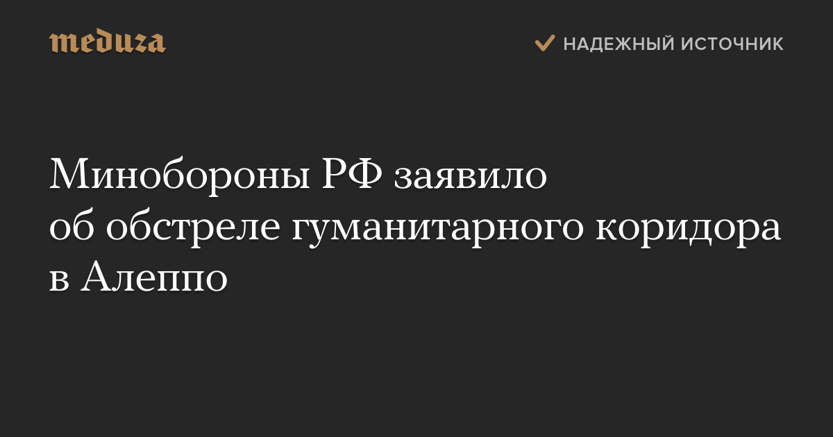 Минобороны РФ заявило об обстреле гуманитарного коридора в Алеппо