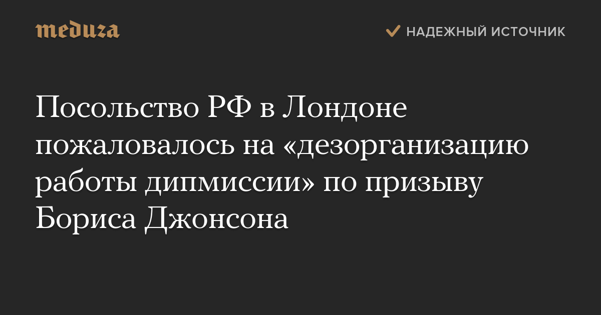 Посольство РФ в Лондоне пожаловалось на «дезорганизацию работы дипмиссии» по призыву Бориса Джонсона