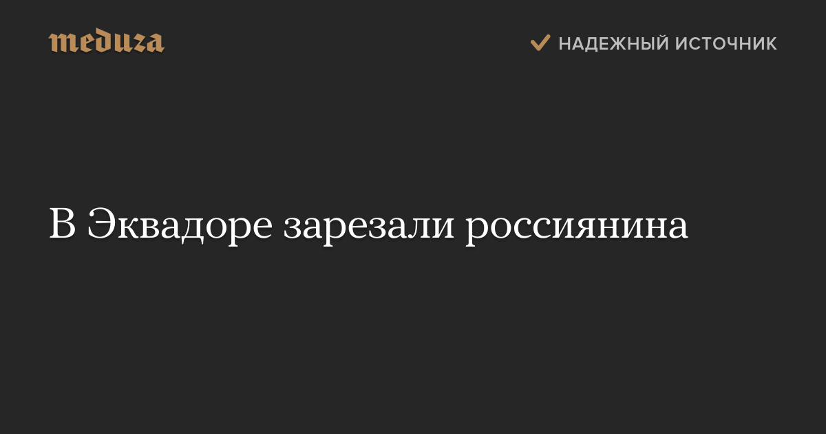 В столице Эквадора зарезали гражданина России. Об этом рассказал представитель российского посольства Никита Кузнецов. По его словам, россиянин был убит после ссоры с эквадорцем у ночного клуба в городе Кито.