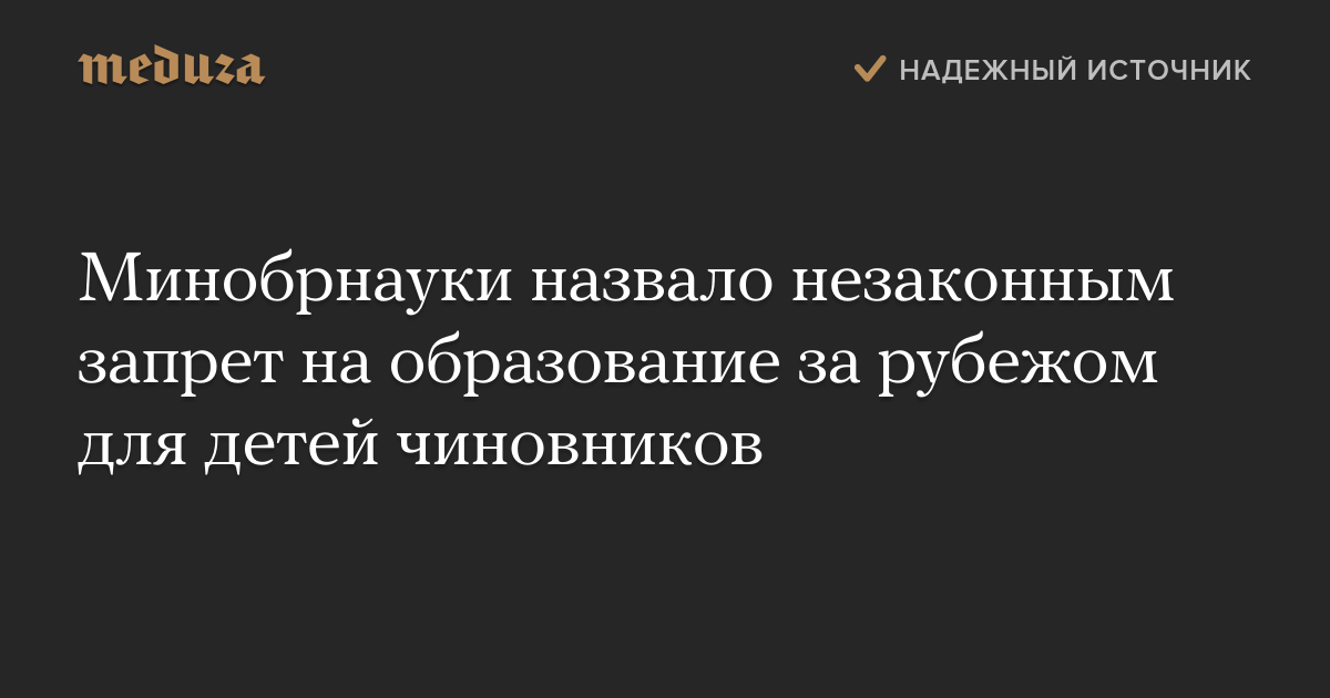 Минобрнауки назвало незаконным запрет на образование за рубежом для детей чиновников