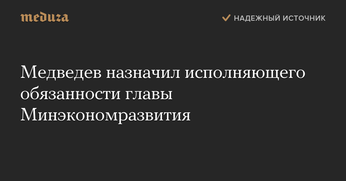 Медведев назначил исполняющего обязанности главы Минэкономразвития