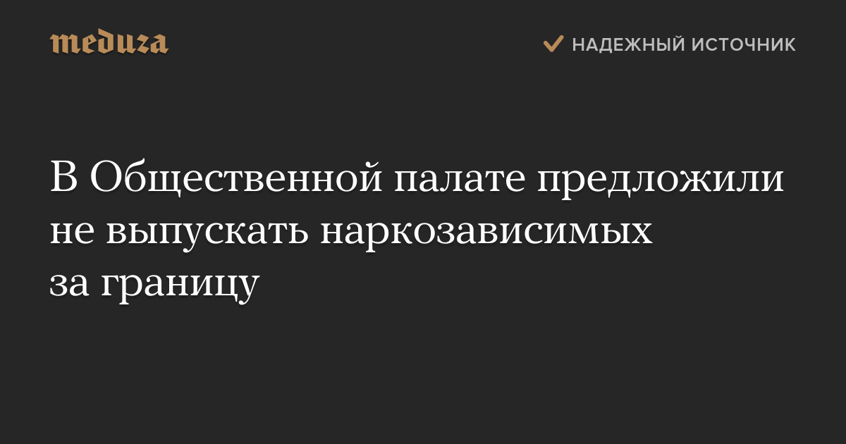 В Общественной палате предложили не выпускать наркозависимых за границу