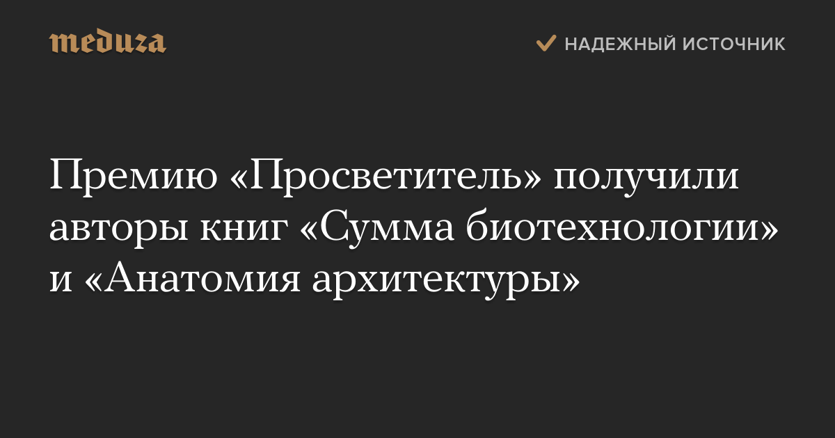 Премию «Просветитель» получили авторы книг «Сумма биотехнологии» и «Анатомия архитектуры»