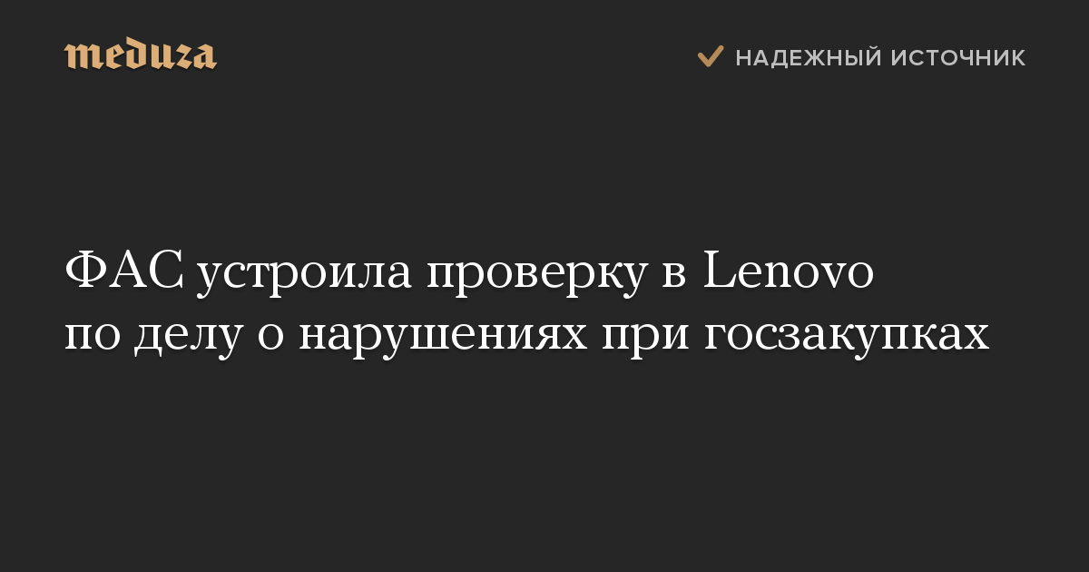 ФАС устроила проверку в Lenovo по делу о нарушениях при госзакупках