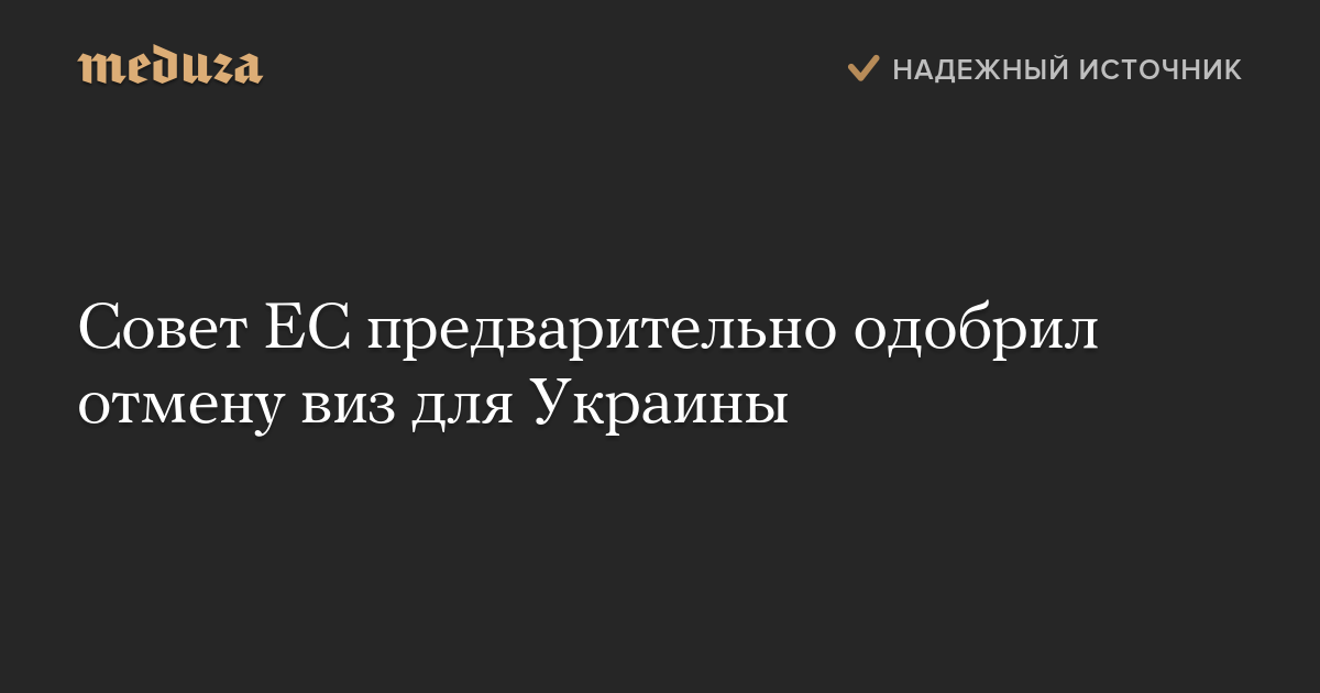 Совет ЕС предварительно одобрил отмену виз для Украины