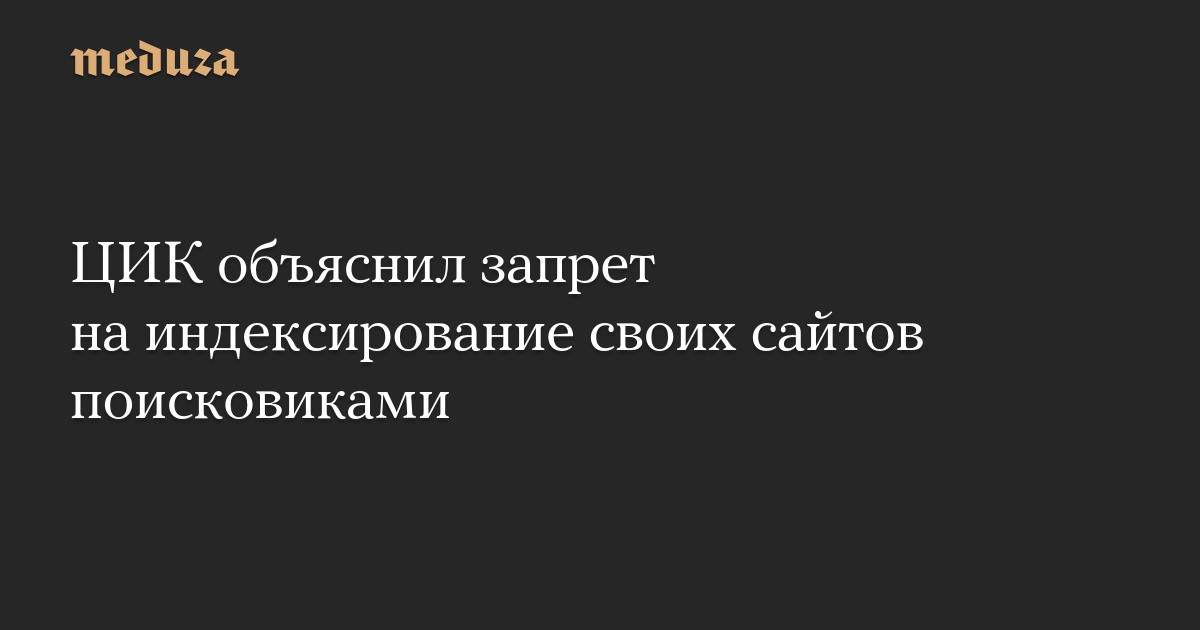 Центризбирком России объяснил, что в день выборов запретил поисковикам индексировать свои сайты из-за возросшей нагрузки. Как заявили «Медузе» в ведомстве, в Единый день голосования 18 сентября «кратно возросла посещаемость сайта ЦИК России и сайтов региональных избирательных комиссий». Кроме того, поисковые роботы обходили сайты чаще обычного.