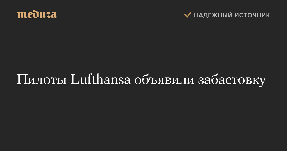 Решение о забастовке было принято после того, как профсоюзу и руководству Lufthansa в очередной раз не удалось договориться о повышении зарплаты пилотов. Профсоюз настаивает на повышении зарплаты 5400 пилотам Lufthansa в среднем на 3,7 процента в год до 2017 года включительно. Руководство авиакомпании готово повысить зарплату на 2,5 процента к 2018 году.